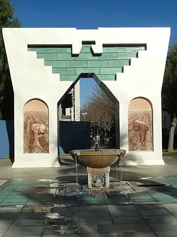 In 2008, the Arch of Dignity, Equality, and Justice, a memoria to César Chávez, namesake of the paseo, was unveiled by Dolores Huerta, noted California civil rights activist and contemporary of Chávez.[4]