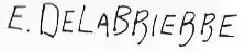 Although his full name was Paul-Édouard Delabrièrre, he almost always signed his sculptures as "E. Delabrierre" in block or semi-block type letters. Occasionally he signed as simply "Delabrièrre" as in the case of a two-humped camel bronze he completed in 1849.[6] The "R" that he used in his signature did not always feature as sharp a curve to the left as shown in signature example No. 1 (above left).[3]