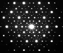 - ↑ Shechtman, D.; Blech, I.; Gratias, D.; Cahn, J.W. (1984). "Metallic Phase with Long-Range Orientational Order and No Translational Symmetry". Phys. Rev. Lett. 53 (20): 1951–1953. Bibcode:1984PhRvL..53.1951S. doi:10.1103/PhysRevLett.53.1951.