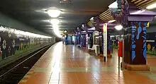 The Paulsternstraße is also a street in Berlin, Spandau. The walls are covered with pictures of flowers, grass and sunpatterns. The ceiling is also covered with stars. The next station is Rohrdamm.[1]