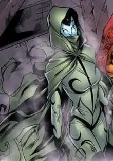 Phobia appeared in two story arcs in Manhunter (Mark Andreyko), first as one of the supervillains recruited by Calculator to take out the Shadow-Thief. In this storyline, she accidentally bumped into Kate Spencer and awakened Kate's fear of causing the death of her son, Ramsey (who, at this point in time, was still recovering from injuries that were inflicted on him by Kate's staff). The Manhunter had psi-shielding in her costume, however, and was able to overpower Phobia in a battle in the LA District Courthouse.[7] In her second appearance, Phobia was assisting Kate Spencer's father in some illegal medical procedure. Manhunter tracked down her father and encountered Phobia on the first floor of the house the two were occupying. After a pitched battle, Kate defeats her again.[8]