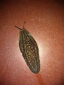 Phyllocaulis is a genus of land slugs, shell-less terrestrial pulmonate gastropod mollusks in the family Veronicellidae, the leatherleaf slugs. This is a South American genus.