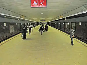 Piața Muncii (Labour Square in English) is a metro station in Bucharest, Romania. The station is named after the old name of the square where it is located (the current name being Piața Hurmuzachi). The station is near the Arena Națională, on a junction. The nearby STB lines are: 40, 56 (tram lines) and 104 (bus line). The N109 night bus also serves the station.