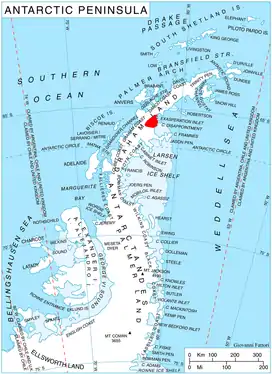 Location of Aristotle Mountains on the Antarctic Peninsula.