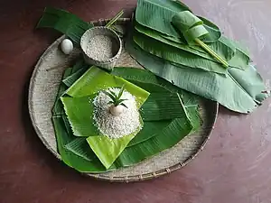 Arrangement of different plant items for a religious ritual in Meitei culture