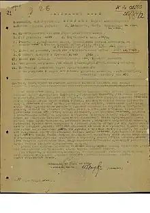 Database "Movement of the people in the Great Patriotic War 1941-1945" (Russian: Подвиг народа в Великой Отечественной войне 1941—1945 гг.) is an electronic database of documents related to the period of the Great Patriotic War. The content of the bank is formed by the documents of the Central Archives of the Russian Ministry of Defence (TsAMO), specifically award files and documents on operational control of hostilities.