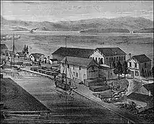 Local businessmen and civic leaders formed the Redwood City Harbor Company in the year 1912, establishing the name of the Port for the era of the early 20th century.[9] In this period competition from the railroad limited growth of the port. A number of industrial companies, however, saw the value of the Port's location, including the Alaska Codfish Company and the Morgan Oyster Company. In particular the Pacific-Portland Cement Company, moving to the Port in 1924, substantially increased shipping activity. Industrial tenants of the port include Cemex, a cement plant,[10] and Sims Metal Management, a metal recycler.[11] The port area has also grown with non-industrial businesses: Spinnaker Sailing, Agiloft, Workboard and others within the Portside Business Park.