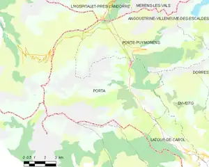 Porta is located in the canton of Les Pyrénées catalanes and in the arrondissement of Prades.