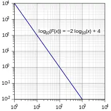 In statistics, a power law is a functional relationship between two quantities, where a relative change in one quantity results in a relative change in the other quantity proportional to a power of the change, independent of the initial size of those quantities: one quantity varies as a power of another. For instance, considering the area of a square in terms of the length of its side, if the length is doubled, the area is multiplied by a factor of four.[1] The rate of change exhibited in these relationships is said to be multiplicative.