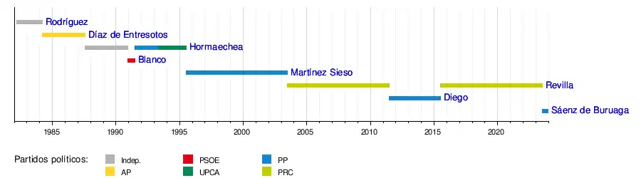 Miguel Ángel Revilla July 7, 2015 July 5, 2023 Regionalist Party of Cantabria (PRC)