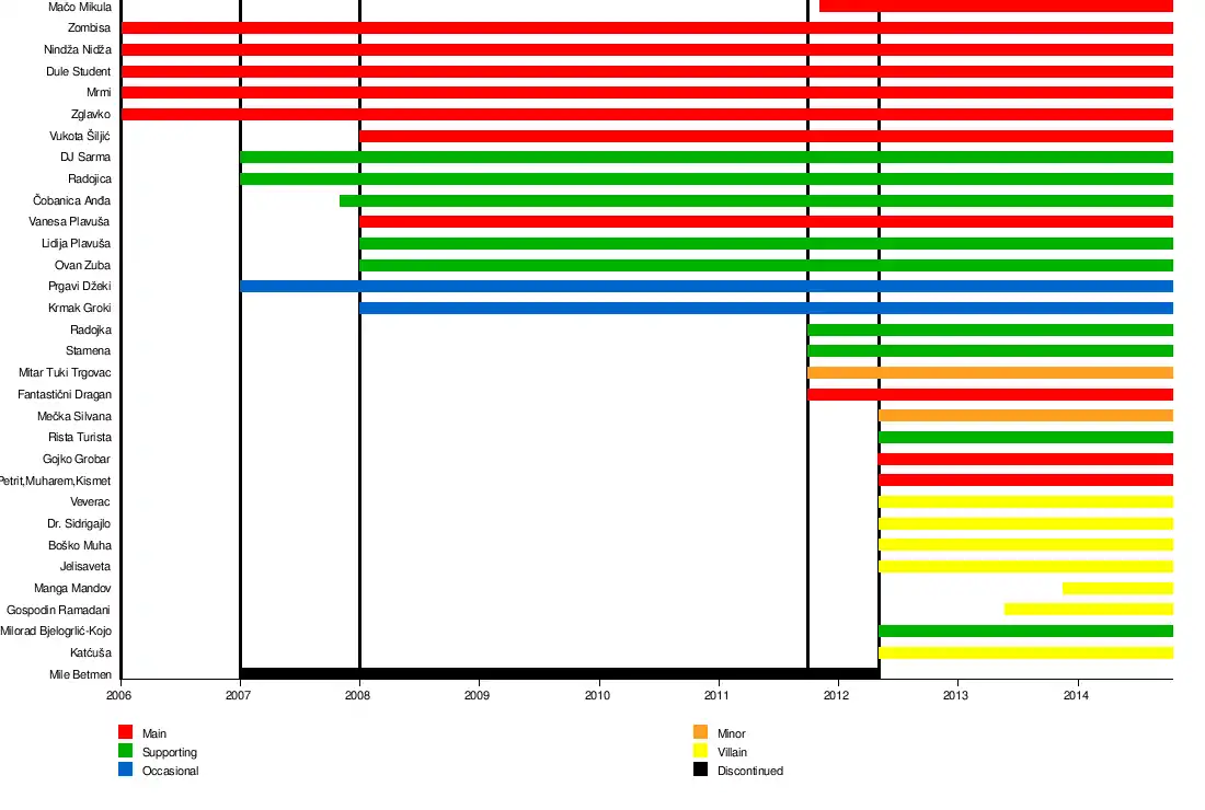 Situations present in the series include the problems of today's world, misfortunes or joys, socially depraved situations, sex, violence, sport, love, hate, alcohol, music, and injustice. Dark and light humor are mixed together and can be seen in one panel at the same time, likewise love, hate or violence. In addition to chaos, there is critique of trashy people and their way of life. Occasional song lyrics mockingly appear from Serbian genres such as turbo folk and folk-pop. Themes dealing with the supernatural, aliens, and ancient myths are also included.