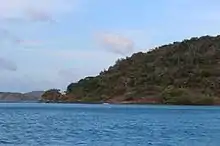 The northeastern corner of the island, Kiwain Point, is only 830 m (908 yd) away from Vivien Point of Thursday Island, the main and most populous of the Torres Strait Islands, separated by Normanby Sound.