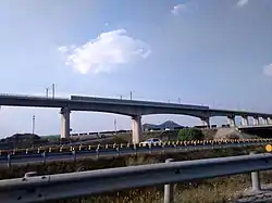 Qingdao–Rongcheng intercity railway is a high-speed railway located in China's, Shandong Province. It travels along the Shandong Peninsula connecting to Qingdao and Rongcheng. Line length is 298.842 km (186 mi) (containing a total length of sidings, spurs and depots etc. of 335 km (208 mi)). The design speed is based on 250 km/h (155 mph) service. However, it has been reserved for the line to be upgraded, if warranted, to 300 km/h (186 mph).[1] Construction consisted of a three-month preparation period, a building period of 27 months and with a joint testing and commissioning period of six months.[2] On December 28, 2014, the Qingdao–Rongcheng intercity railway opened from Jimo to Rongcheng.[3] The whole line opened on November 16, 2016.[4]