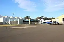 Bankstown Airport's passenger terminal with a Piper Chieftain on the right, October 2016