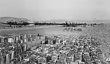 The station had never been officially transferred from the RAF and the anti-aircraft support units were quick to return. Several Squadrons were based at Westonzoyland, but the longest stay was by No. 16 Squadron RAF with Westland Lysanders,[3] and later with the North American Mustang. Later Supermarine Spitfires became a common sight being flown by No. 19 Squadron RAF and others.[1] Nos. 286 and 587 Squadrons with their mixture of Miles Martinets, Hawker Hurricanes, Airspeed Oxfords, Vultee A-31 Vengeances and North American Harvards remained in residence until near the end of hostilities.[1] 587 Squadron was formed at RAF Westonzoyland, on 1 December 1943, from 1600 Flight, 1601 Flight and 1625 Flight for anti-aircraft co-operation duties over Wales and the south east of England. It operated a variety of aircraft in this role. Due to the ongoing training requirement the squadron was not disbanded at the end of the war and it moved to RAF Tangmere on 1 June 1946 to cover the south coast, but was disbanded shortly afterwards on 15 June 1946.[4]