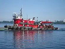 The Radium Yellowknife is a Canadian tugboat.[1] Like other vessels built for service on the MacKenzie River, its tributaries, and Great Bear Lake and Great Slave Lake, she was first built in a shipyard in Vancouver, British Columbia, then disassembled and shipped by rail to Waterways, Alberta. There she was reassembled and launched into Clearwater River on August 18, 1948 - late in the season, as the rivers used to freeze in late September or early October. Her reassembly was delayed initially by floods in the Fraser valley in May hindering transport, and then by a derailment of several of the railway cars carrying her components. [2] After launch, she sailed to the portage on the Slave River at Fort Smith, Northwest Territories and was dragged overland across the portage to the lower river, where she could then access the Great Slave Lake, the MacKenzie River, and the Beaufort Sea.[2][3]