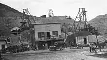 The frenzy that these claims created soon had Rawhide booming. Investors began selling stocks at a frenetic pace, and the town soon had a population of about 5000, with three banks, four churches, a school, twelve hotels, twenty-eight restaurants, a theater, and thirty-seven saloons. While the original mines and claims did produce a decent profit in gold and silver, the fever created an amount of activity far in excess of what the mines could support. Stock swindlers like George Graham Rice , a flashy con-artist from Goldfield, plied their trade, creating a sense that Rawhide would be the next Virginia City (or the like of any number of other Nevada boom towns), with untold riches to be had for the savvy folks who would just invest in his companies. Others, like businessman George "Tex" Rickard came to Rawhide to establish legitimate businesses, and make money off the boom while it lasted. Rawhide’s hey-day was short-lived; the glaring, gross over-promotion which manipulators performed to inflate the worth of Rawhide doomed its chance for success from the start.