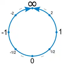 - ↑ The argument used to construct P1(R) can also be used with any field K and any dimension to construct the projective space Pn(K).