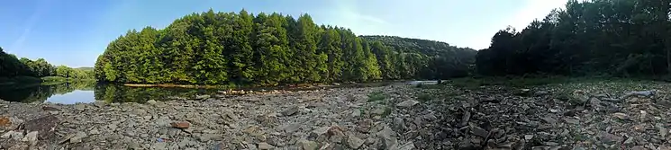 A panoramic view of the Redbank Creek from the mouth of Long Run, Clarion County.