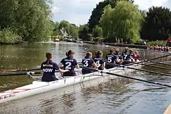 A women's rowing crew from Regent's Park College Boat Club