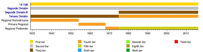The Primera Autonómica de Melilla stands at the sixth level of Spanish football and is the only league played exclusively within the autonomous city of Melilla. The champion competes against the playoff winner from the Regional Preferente de Ceuta for promotion to the Tercera División RFEF (to Group 9, played by teams from Eastern Andalusia). Federation rules allows the champion to be promoted directly if there is no Melilla club in the Tercera División.