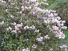 Rhododendron yunnanense (云南杜鹃) is a species of rhododendron native to Myanmar and Guizhou, Shaanxi, Sichuan, Xizang, and Yunnan, China, where it grows at altitudes of 2200–3600 meters. It is a shrub that grows to 1–2 m in height, with leaves that are oblong, lanceolate, oblong-lanceolate or obovate, 2.5–7 by 0.8–3m in size. Flowers are white, pale red, or pale purple.