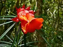 Rhododendron stenophyllum is a species of rhododendron native to Borneo. It an epiphyte or terrestrial shrub, native to Mount Kinabalu and other mountains in Malaysia's Sabah state.[1] The species name stenophyllum means 'narrow leaved'. It grows in montane rain forest.