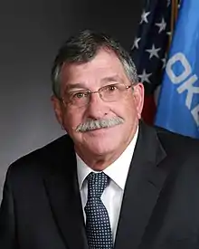 Rick West is an American politician serving as a member of the Oklahoma House of Representatives from the 3rd district.[1] He was previously elected in 2016 to serve for one term and retired in 2018. In November 2020 he got elected back to his old seat after winning the primaries against his predecessor Lundy Kiger. He was sworn in on January 11, 2021.[2]