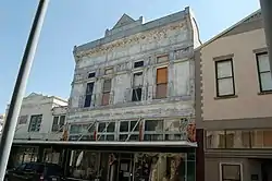Built in 1900, the structure is a two-story brick Italianate style commercial building with an elaborate pressed metal front.[2] The facade was completely restored sometime between 2013 and 2016.[lower-alpha 1]