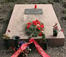 In the city of Berlin a Liebknecht-Luxemburg Demonstration, shortened to LL-Demo, is organised annually in the month of January around the date of their death. This demonstration takes place on the second weekend of the month in Berlin-Friedrichshain, starting near the Frankfurter Tor and then to their graves in the central cemetery Friedrichsfelde, also known as the Gedenkstätte der Sozialisten (Socialist Memorial).[68] In East Germany, the event was widely considered to be a mere show for Socialist Unity Party of Germany politicians and celebrities, which was broadcast live on state television.[69]