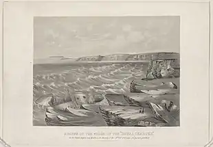 The Royal Charter was a steam clipper which was wrecked off the beach of Porth Helaeth[1] in Dulas Bay on the northeast coast of Anglesey, Wales on 26 October 1859. About 450 lives were lost,[2] the highest death toll of any shipwreck on the Welsh coast. The precise number of dead is uncertain as the complete passenger list was lost in the wreck, although an incomplete list (not including those who boarded just before departure) is retained in the Victorian Archives Centre in Victoria, Australia. The Royal Charter was the most prominent among about 200 ships wrecked by the Royal Charter Storm.