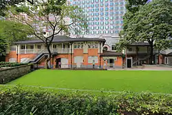 The main buildings of the club are located by Victoria Harbour on the former Kellett Island, now part of Causeway Bay following land reclamation, and forming the western boundary of the Causeway Bay Typhoon Shelter. The club moved there in 1938, and the clubhouse was built in International Modern style in 1939[7] on the foundations of the old Naval Powder Magazine.[8] It was designed by architects G.G. Wood and J.E. Potter of Leigh & Orange.[9] The new premises were formally opened on 26 October 1940 by the Acting Governor, Lieutenant General E. F. Norton.[10] The building has been listed as a Grade III historic building since 22 January 2010.[11]