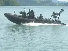 Called on by the Combined Task Force 150 (CTF-150), the multinational coalition patrolling the pirate-infested gulf, the RMN's KD Sri Inderasakti dispatched a helicopter (including PASKAL naval commandos) to the scene. The helicopter fired two warning shots at the pirates' skiff, causing them to call off the attack on the heavy load carrier Zhenhua 4 and flee.[19][20]
