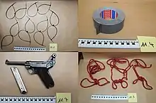 The cantonal police offered a reward of 100,000 francs for information.[5] For five months, the killer remained elusive, but the investigation led in May 2016 to the arrest in a Starbucks in Aarau of a 33-year-old student,[3][4][6] Thomas Nick.[7] His DNA as well as his fingerprints were identified at the crime location, and he gave a comprehensive confession.[2][4] He coached youth football and had no criminal record. The prosecutors have never disclosed how they caught him but location records of his phone - which cell sites the phone had connected to during the day of the crime - and internet search history played a role in identifying him as a suspect.[3][8][9] He did not know the victims and apparently sought them out because of the younger son. When he was apprehended, the police found cable ties, adhesive tape, an old Swiss army ordnance pistol, and rope handcuffs in a rucksack. These were interpreted as a sign that he planned future crimes of a similar nature.[2][4]