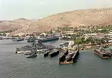 The Salamis Naval Base (Greek: Ναύσταθμος Σαλαμίνας) is the largest naval base of the Hellenic Navy. It is located in the northeastern part of Salamis Island (Cape Arapis), Greece and in Amphiali and Skaramangas. It is close to the major population centre of Athens.