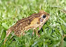 The cane toad is an introduced species which predates on Saltuarius salebrosus