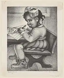 Writing Lesson by Samuel Joseph Brown, Jr. 1938. Published by Works Progress Administration (WPA), Federal Art Project, Philadelphia, 1935 - 1943