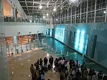 Terminal 2 was inaugurated on 5 July 2010 and opened for international flights on 15 September 2010. The terminal won the award for the best Steel Structure at the 2009 edition of the National Structural Steel Design and Construction Awards.[24] The terminal has four aerobridges and 32 check-in counters. With the total floor area of approximately 41,000 sq. meters, this terminal will be able to accommodate around 1,600 passengers at any given time. In November 2018, a new Plaza Premium lounge was opened at the international departures area of Terminal 2, which caters for business class and first class passengers as well as passengers holding Priority Pass and other bank cards. The new 51,975-square-metre (559,450 sq ft) apron area can cater for the parking of nine A-321 and four ATR-72 type of aircraft.