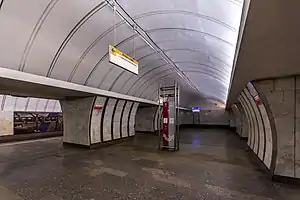 Savyolovskaya (Russian: Савёловская), alternatively transliterated Savelovskaya, is a station on Serpukhovsko-Timiryazevskaya Line of the Moscow Metro. It is in the Butyrsky District of Moscow and has a depth of 52 metres (171 ft). It opened on 31 December 1988 and was the northern terminus of the line until an extension in 1991 pushed the terminus out to Otradnoye.