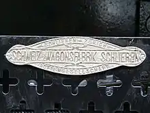 Wagi Schlieren builders plate on heritage tramcar Ce 2/2 ("Lisbethli") from 1900 (Tram-Museum Zürich).