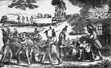 On January 6, 1836, a band of Seminoles attacked the coontie plantation of William Cooley on the New River (in present-day Fort Lauderdale, Florida), killing his wife and children and the children's tutor. The other residents of the New River area and of the Biscayne Bay country to the south fled to Key West.[35] On January 17, volunteers and Seminoles met south of St. Augustine at the Battle of Dunlawton. The volunteers lost four men, with thirteen wounded.[36] On January 19, 1836, the Navy sloop-of-war Vandalia was dispatched to Tampa Bay from Pensacola. On the same day 57 U.S. Marines were dispatched from Key West to help man Fort Brooke.[37]