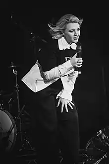 Rebecca Lucy Taylor (born 15 October 1986),[1] also known by her stage name Self Esteem, is a British musician.[2] First known as one half of the band Slow Club, she launched a solo career as Self Esteem with the single "Your Wife" in 2017, followed by the albums Compliments Please in 2019 and Prioritise Pleasure in 2021. A multi-instrumentalist, vocalist, songwriter and theatre composer, she is winner of the 2021 BBC Music Introducing award and Prioritise Pleasure was nominated for the 2022 Mercury Prize. From September 2023 to March 2024 she is performing the lead role of Sally Bowles in the West End production of Cabaret.