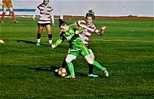 Serra Çağan obtained her license on June 10, 2008, for her hometown club İzmit Saraybahçe Belediyespor.[1] After appearing in eight matches in one season of the Turkish Women's Second League, she transferred to İzmit Belediyespor, which was in the Regional League. At the end of the 2009–10 season, her team was promoted to the Second League, and the next season to the First League. She capped in 50 matches scoring 21 goals in three seasons. In the 2012–13 season, she was with İzmit Çenesuyu Plajyoluspor in the Second League again, where she netted 14 goals in 14 matches. For the next season, she signed with Karşıyaka Koleji Spor, another İzmit-based club.[2][3][4] Çağan played in 33 games and scored 19 goals in two seasons between 2013 and 2015.[1]