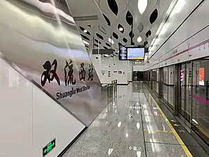Shuangliu West Station (Chinese: 双流西站) is a transfer station on Line 3 and Line 10 of the Chengdu Metro in China.[1][2] It serves the nearby Shuangliu West railway station.