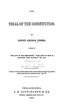 - 1 2 3 Riker, William H. "Sidney George Fisher and the Separation of Powers During the Civil War", Journal of the History of Ideas, Vol. 15, No. 3 (Jun., 1954), pp. 397-412.