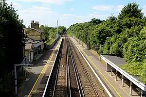 - ↑ Butt, R.V.J. (1995). The Directory of Railway Stations. Yeovil: Patrick Stephens Ltd. p. 158. ISBN 1-85260-508-1. R508.