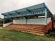 The main stand at the Miners Welfare Ground, home of South Kirkby Colliery Football Club.