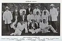 Southland first played interprovincial cricket in 1864,[1] and often played against touring teams from Australia, Fiji and England.[2] The Southland Cricket Association was formed in 1892,[3] leading to an increase in representative matches, including the annual match against Otago, which began in 1893–94 and continued until the 1980s. In 1910–11 Southland were the first winners of the Hawke Cup.[4][5] They retained it in 1911–12 but surrendered it in 1912–13 when they did not take part.[6]