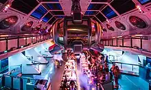 In 2018, the regular queue line was extended into the upper level of the former Starcade, featuring a large futuristic space telescope on display amongst the Starcade's original 1977 murals.[11][12]