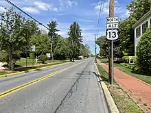 U.S. Route 13 (US 13) runs along the Atlantic coastline for over 500 miles (800 km), passing through five states. Along its route, it possessed numerous special routes, which are all loops off the mainline US 13. At present, there are at least 15 special routes in existence: two in North Carolina, five in Virginia, two in Maryland, four in Delaware, and two in Pennsylvania. 13 others have existed in the past but have been deleted.